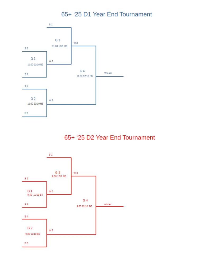 Print 65+ Year End Tournament bracket. roll down for schedule